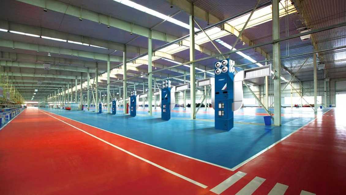 針對大型工業廠房存在焊接工位數量多、不固定性等特點,很多無法進行源頭收集治理,傳統的送排風工藝已無法滿足目前國家環保需求,因此針對此類工況可以采用自循環煙塵凈化裝置和廠房煙塵治理治理工藝。